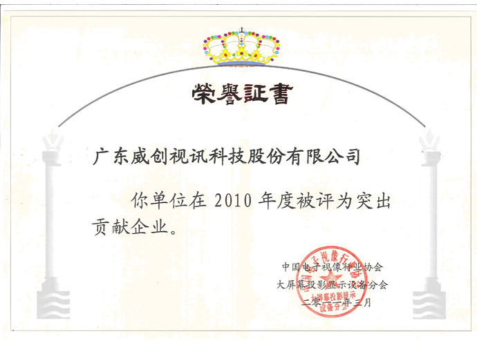 • 中國(guó)電子視像行業(yè)協(xié)會(huì)突出貢獻(xiàn)企業(yè)