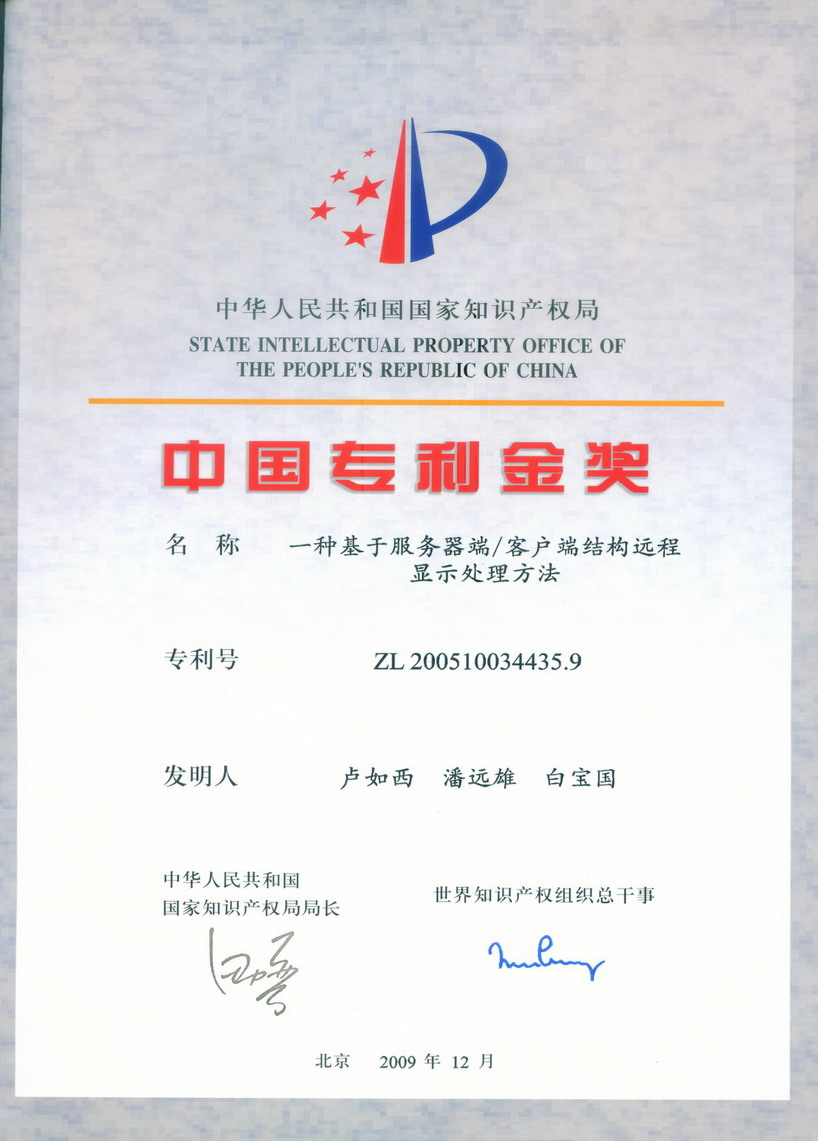 • 國(guó)家專利金獎(jiǎng)