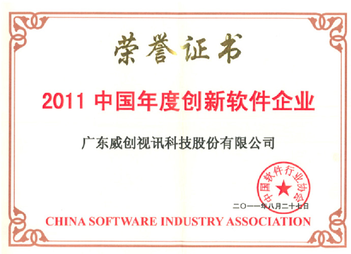 • 2011中國(guó)年度創(chuàng)新軟件企業(yè)