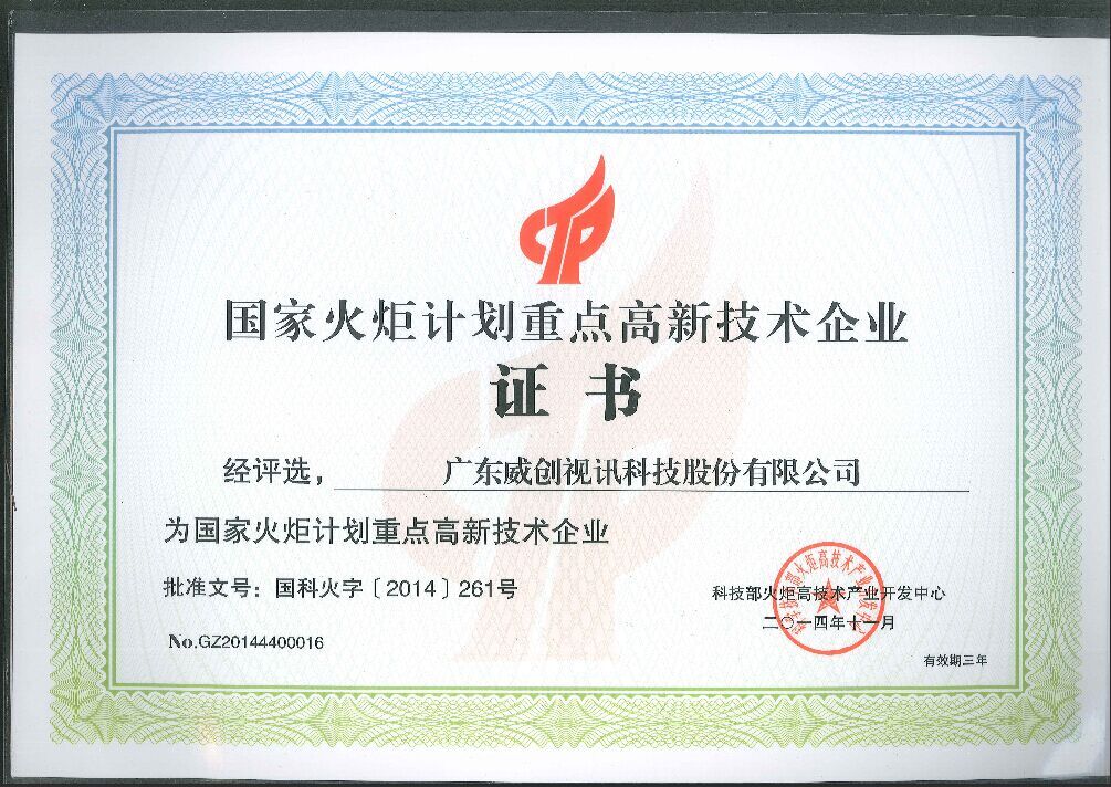 • 國(guó)家火炬計(jì)劃重點(diǎn)高新技術(shù)企業(yè)證書