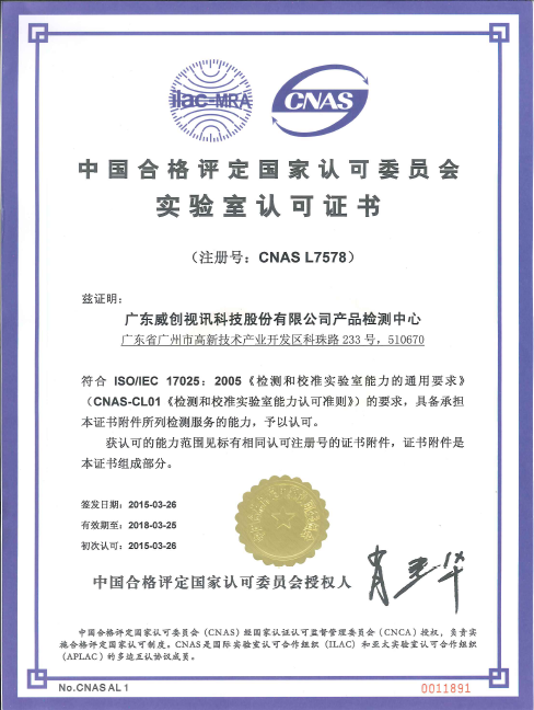 • 國(guó)家CNAS實(shí)驗(yàn)室認(rèn)可證書