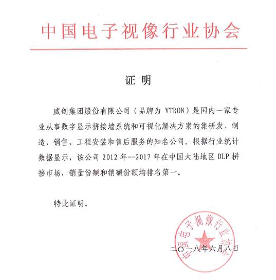 • 中國(guó)電子視像行業(yè)銷量第一證明(2012-2017)