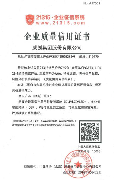• 21315企業(yè)質(zhì)量信用AAA證書