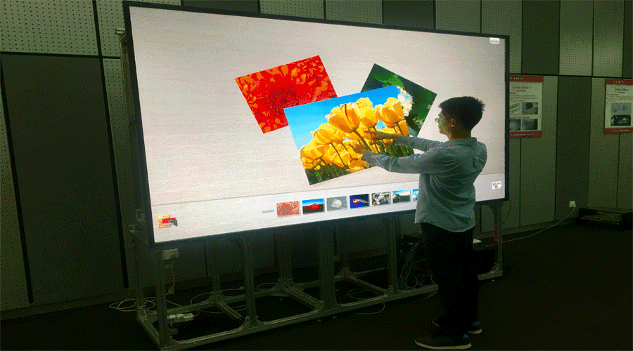 具備“觸控功能”的威創(chuàng)COB小間距LED系統(tǒng),主要利用紅外掃描多點(diǎn)技術(shù)(默認(rèn)10點(diǎn)),實(shí)現(xiàn)多點(diǎn)流暢觸摸效果,可根據(jù)用戶實(shí)際需求定制實(shí)現(xiàn)有效觸摸區(qū)域。