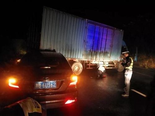 2018年12月2日晚22時(shí)32分許,紹興高速公路段,一貨車失控后與護(hù)欄發(fā)生碰撞,橫停在高速公路,4分鐘后,另一輛轎車途經(jīng)此處,連忙踩剎車,卻因?yàn)槁访嫔嫌姓厥仑涇嚵粝碌挠臀?,?dǎo)致制動(dòng)效果不佳,猛地撞上了貨車!