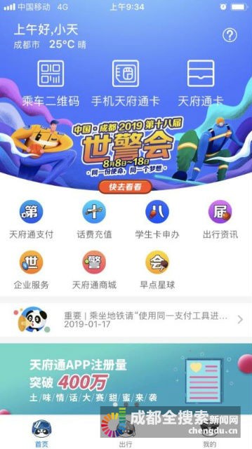 為迎接8月8日舉行的“中國?成都2019第十八屆世界警察和消防員運動會”,成都天府通推出了“世警會”專屬定制紀(jì)念卡,天府通APP首頁也更換了全新的“世警會紀(jì)念版”版面。