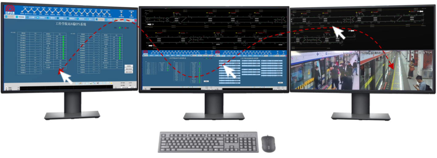 所有ISCS\CCTV\ATS\AFC工作站等業(yè)務(wù)主機,都是通過網(wǎng)線將音頻、視頻、控制信號傳輸至車站控制室內(nèi)的4臺4K顯示器,實現(xiàn)人機分離,一個鼠標(biāo)在多個顯示畫面之間無縫跨屏,在跨屏同時控制KVM(鼠標(biāo)鍵盤控制)聯(lián)動。