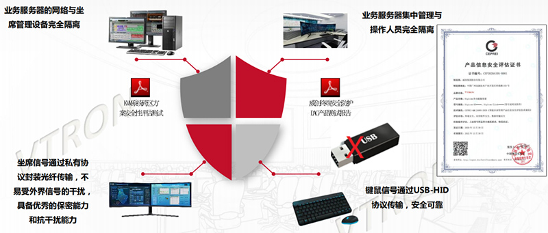 安全性是威創(chuàng)電力分布式處理系統(tǒng)的核心。業(yè)務(wù)網(wǎng)絡(luò)和分布式網(wǎng)絡(luò)完全物理隔離,坐席信號通過私有協(xié)議封裝光纖傳輸,具備優(yōu)秀的保密和抗干擾能力。系統(tǒng)核心硬件和軟件通過工信部安全評估測試和認(rèn)證。