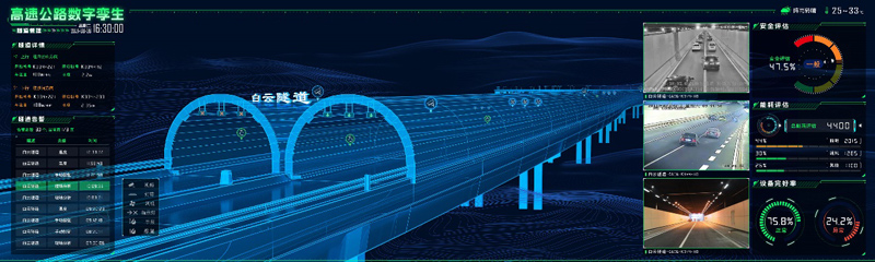 基于高速公路數(shù)字孿生,加載呈現(xiàn)高速入口、收費站、服務區(qū)等點位圖層,匯聚高速公路管轄路段運營、路況、服務、事件等統(tǒng)計數(shù)據(jù),三維立體呈現(xiàn)高速運營狀態(tài),協(xié)助管理人員實時掌控高速公路運營動態(tài)、發(fā)展趨勢、運營風險,提升高速業(yè)務精細化管理水平。