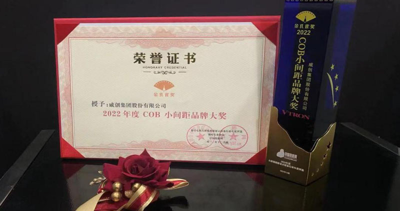 鑒于威創(chuàng)對(duì)推動(dòng)COB小間距發(fā)展所做出的重要貢獻(xiàn),12月15日,深圳,在中國(guó)投影網(wǎng)攜手中國(guó)視聽網(wǎng)、數(shù)字標(biāo)牌網(wǎng)、音響網(wǎng)舉行的“中國(guó)大屏幕投影行業(yè)2022年度評(píng)選”頒獎(jiǎng)典禮上,威創(chuàng)榮獲“2022年度COB小間距品牌大獎(jiǎng)”。